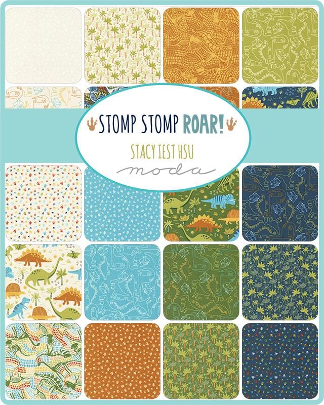 Stomp Stomp Roar celebrates Dinosaurs. With stomping through a jungle, claw prints on the ground and colorful Dino bones, this collection captures the excitement we have for these ancient animals. For something new, the Stomp Stomp Roar panels include a Dino backpack to go with a couple of easy Dino pillows and a fabric activity book. There are so many possibilities, your Dino-enthusiast will be roaring with delight.